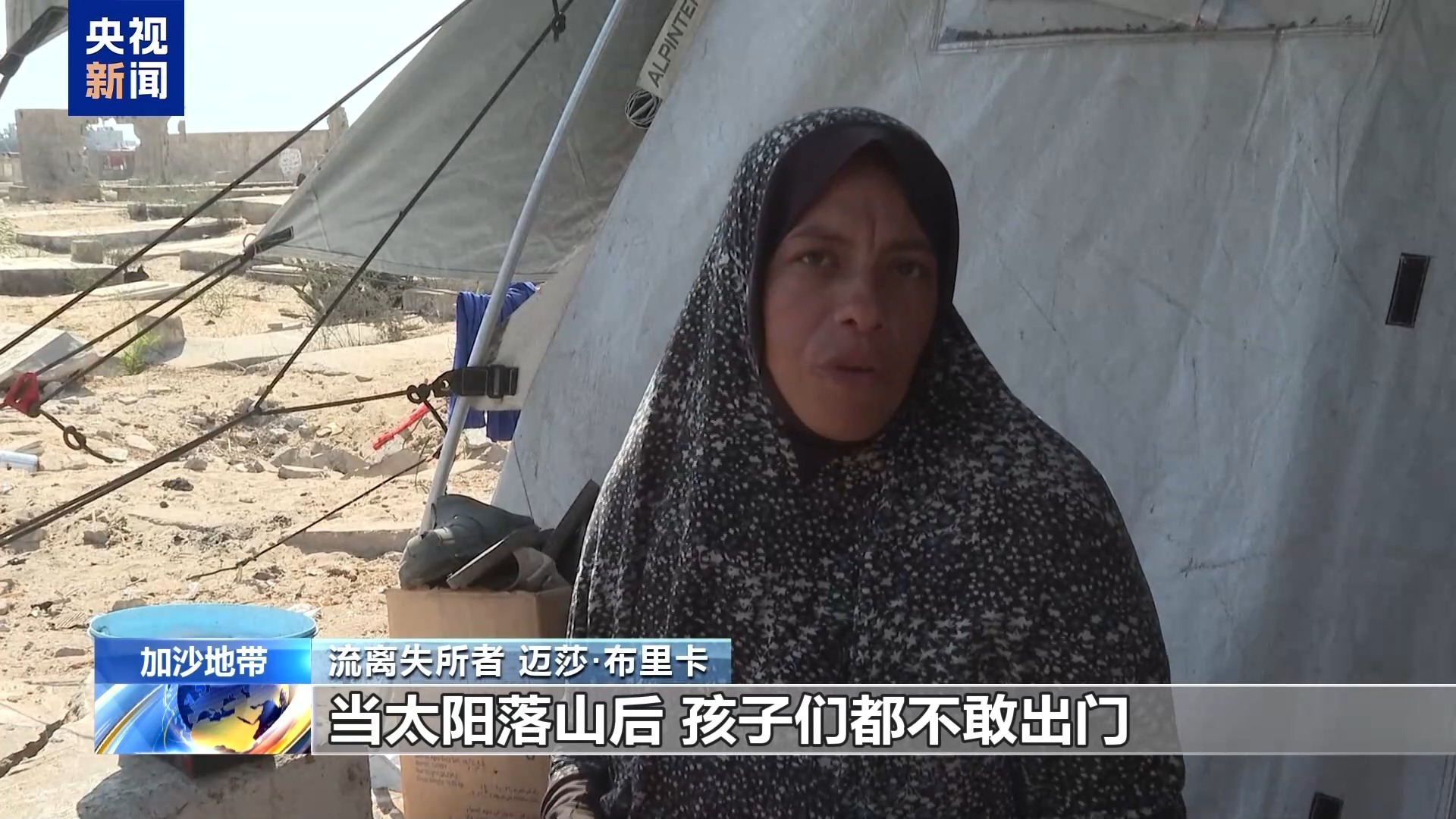 流离失所者 迈莎·布里卡:不管是停火生效前还是生效后,我的生活都没有改变。 我没办法回家,还是住在墓地里。当太阳落山后,孩子们都不敢出门。我有四个小孩,他们都害怕出去。因为晚上有野狗,孩子还害怕死者。我们的生活还是很困难。哪怕有停火协议,我们也不能回家,因为我们的房子在以军控制区里。